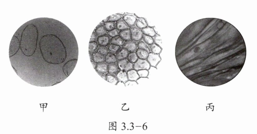 11. 番茄的果实酸甜可口,但果实的表皮与果肉、内部“筋络”的口感明显不同,某生物学兴趣小组的同学们分别取番茄果实的表皮、果肉和内部“筋络”制成临时装片,放在显微镜下观察。图 3.3 - 5 为番茄植株的结构示意图,图 3.3 - 6 为同学们在显微镜下观察到的视野图像。回答下列问题。