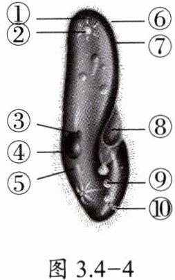 (4) 草履虫是单细胞生物,一个细胞可以完成各项生理功能。如图3.4 - 4所示,草履虫可以从⑩胞肛排出食物残渣,通过[
