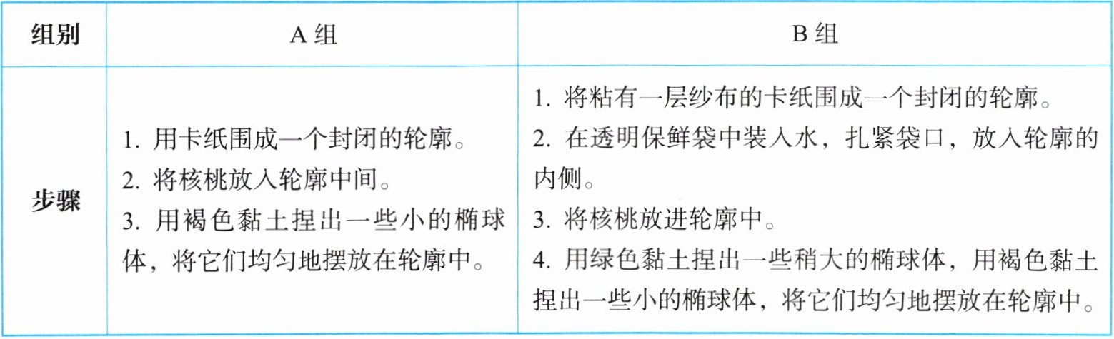 3. 用褐色黏土捏出一些小的椭球体,将它们均匀地摆放在轮廓中。|1. 将粘有一层纱布的卡纸围成一个封闭的轮廓。