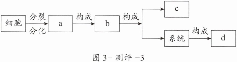 15. 许许多多的细胞有组织、有秩序地结合在一起,形成各种结构,构成一个个充满生命活力的生物体。图3-测评-3表示某两种生物体的结构层次,下列叙述错误的是(