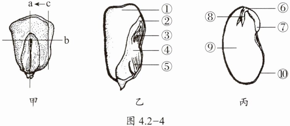 11. 为了更好地认识种子的结构,康康进行了“观察种子的结构”实验,有关实验操作和观察结果如图 4.2 - 4 所示。回答下列问题。