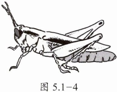 (2) 不同于蚯蚓的外形特征,蝗虫(图 5.1-4)身体分为