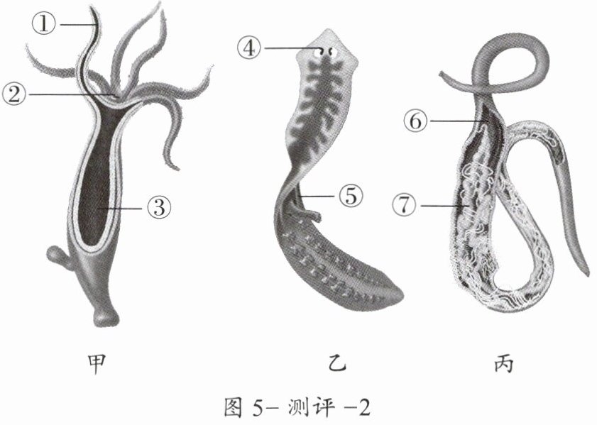 21.(5分)图5-测评-2是水螅、涡虫和蛔虫的结构示意图。据图回答下列问题。