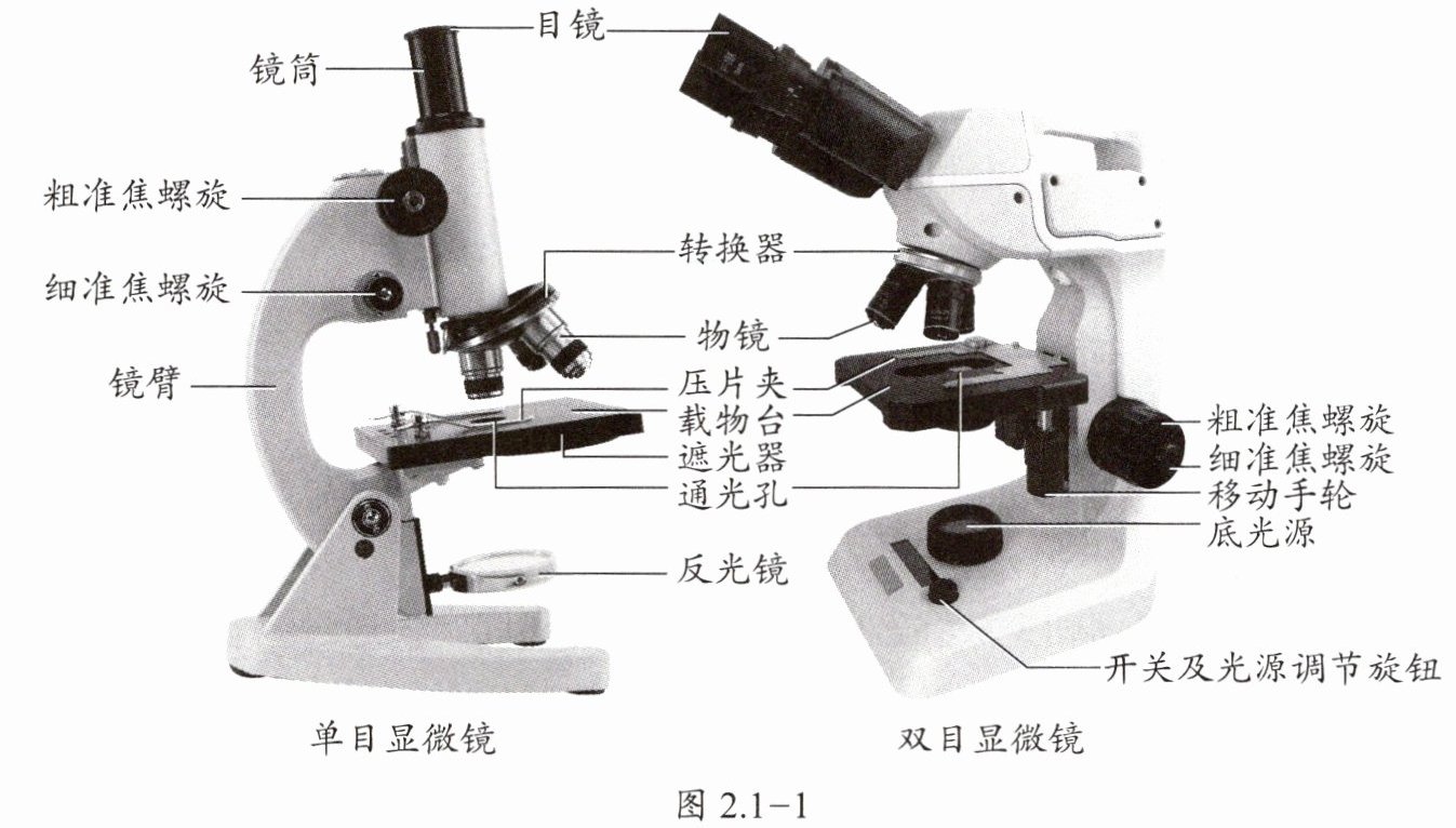 1. 光学显微镜(图 2.1 - 1)的基本结构及各部分的作用