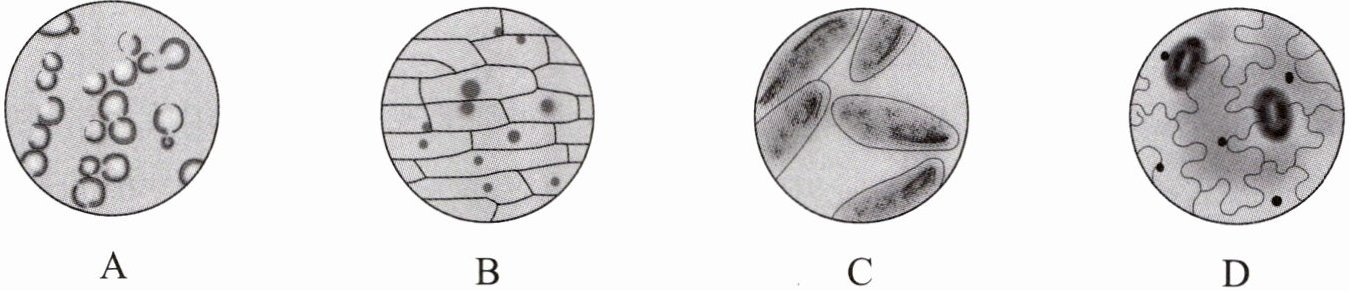 5. 同学们用普通光学显微镜观察下列几种常见生物材料,其中酵母菌是(