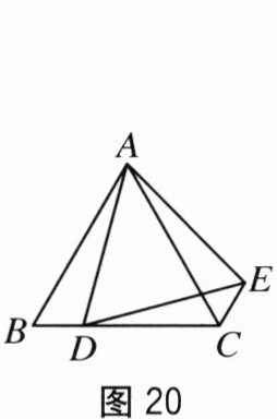 【基本图形】(1)如图20,以AD为一边作等边△ADE,连接CE.可得CE+CD=AC,说明理由.