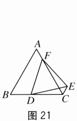 【迁移运用】(2)如图21,点F是AC边上一点,以DF为一边作等边△DEF.求证CE+CD=CF.
