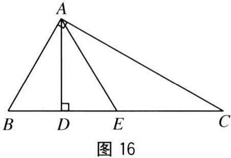 21. (10 分)如图 16 所示,已知 AD,AE 分别是△ABC 的高和中线,AB = 6 cm,AC = 8 cm,BC = 10 cm,∠CAB = 90°. 试求:
