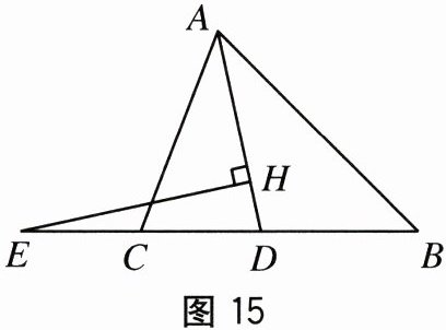 20. (10 分)如图 15,AD 是△ABC 的角平分线,∠B = 45°,点 E 在 BC 延长线上,且 EH⊥AD 于点 H.