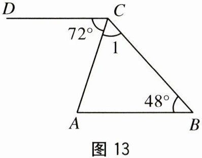 17. (8 分)如图 13,∠B = 48°,∠1 + 12° = ∠A,∠ACD = 72°,求证 AB//CD.