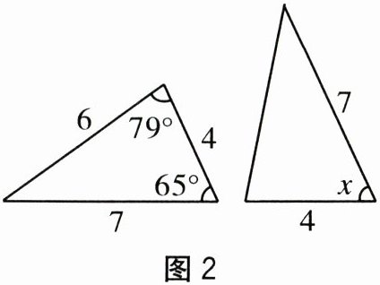 3. 如图2,图中的两个三角形是全等三角形,那么x的值是(