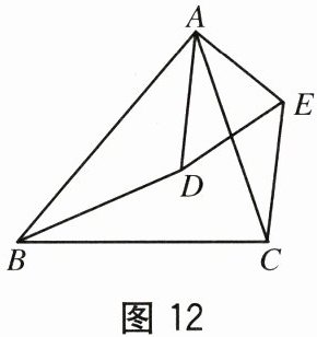 17. (12 分)如图 $12$,在 $\triangle ABC$ 的内部取一点 $D$,外部取一点 $E$,使得 $\frac{AB}{AC}=\frac{AD}{AE}=\frac{BD}{CE}$.