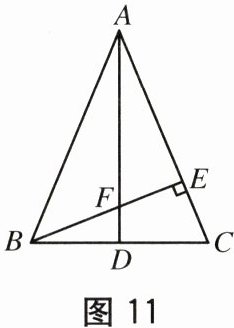 16. (10 分)如图 $11$,在 $\triangle ABC$ 中,$AB = AC$,$BE\perp AC$ 于点 $E$,$AD$ 平分 $\angle BAC$,$AD$ 与 $BE$ 相交于点 $F$.求证:$\triangle ACD\backsim\triangle BFD$.