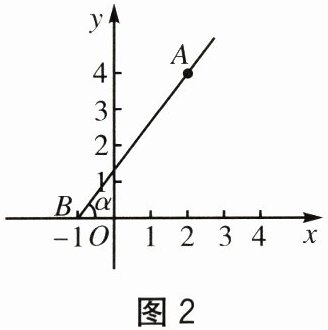 4. 如图$2$,已知$\angle\alpha$的一边在$x$轴上,另一边经过点$A(2,4)$,顶点$B$的坐标为$(-1,0)$,则$\tan\alpha$的值是(