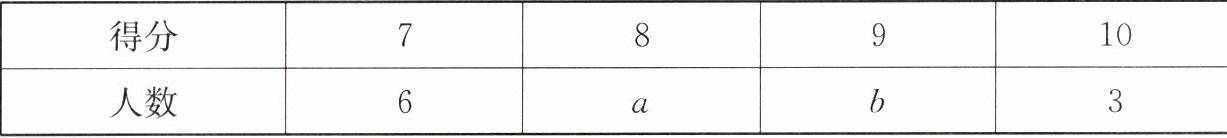 15. (8分)九年级化学兴趣小组20位同学的实验操作得分分别如下:7,7,8,9,9,10,8,10,7,9,8,10,9,8,7,7,9,9,7,9.化学老师把数据制成如下统计表.