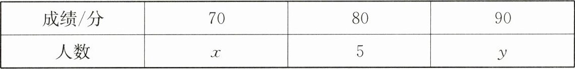13. 某班10名学生某次数学测验成绩的统计表如下.若这10名学生平均成绩是79分,则x=