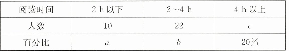 14. 班长调查本班学生一周内课外阅读情况,按照课外阅读时间进行统计,结果如下表,则本班学生共有
