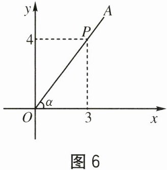 15. 如图6,$P$是角$\alpha$的边$OA$上一点,且点$P$的坐标为$(3,4)$,则$\sin\alpha =$