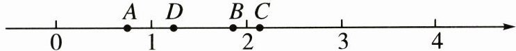 4. 算式$25.07÷13$的商大约在下图中( )点的位置。