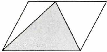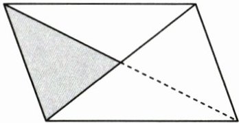 3. 如右图所示,平行四边形的面积是$15cm^2,$图中涂色部分的面积是$( )cm^2。$