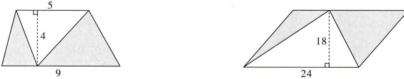 $(5+9)× 4÷ 2-5× 4÷ 2=18(cm^2)$
