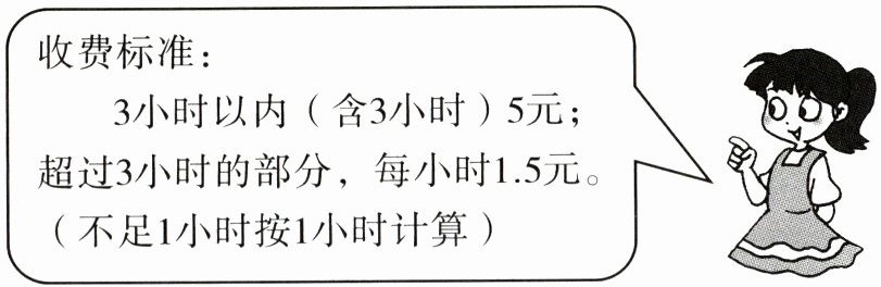 6.7小时≈7小时 5+(7-3)×1.5=11(元)