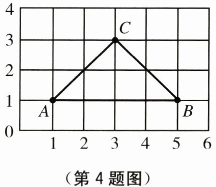 4. 如下图,$A点用数对表示为(1,1)$,$B$点用数对表示为( , ),$C$点用数对表示为( , ),三角形$ABC$是( )三角形。