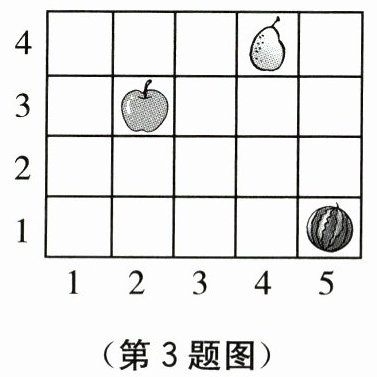 3. 如下图,苹果的位置为$(2,3)$,则梨的位置可以表示为( , ),西瓜的位置可以表示为( , )。