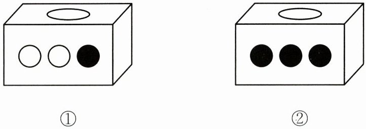 4. 如下图,( )号盒子里可能摸到黑色小球,( )号盒子里一定可以摸到黑色小球,( )号盒子里不可能摸到白色小球。