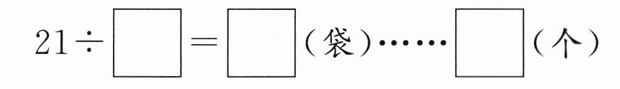 )个。$21÷□=□$(袋)$\cdots\cdots$$□$(个)