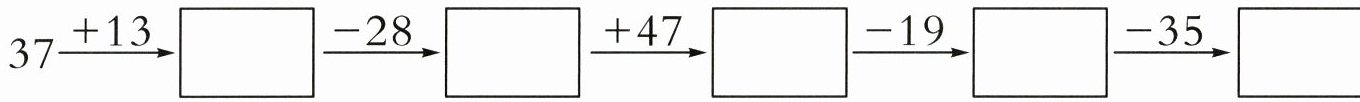 $37\xrightarrow{+13}□\xrightarrow{-28}□\xrightarrow{+47}□\xrightarrow{-19}□\xrightarrow{-35}□$