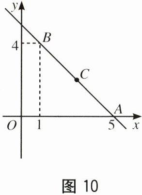 18. (10分)如图10, 已知直线 $ y = kx + b $ ( $ k,b $ 为常数) 经过点 $ A(5,0) $, $ B(1,4) $.