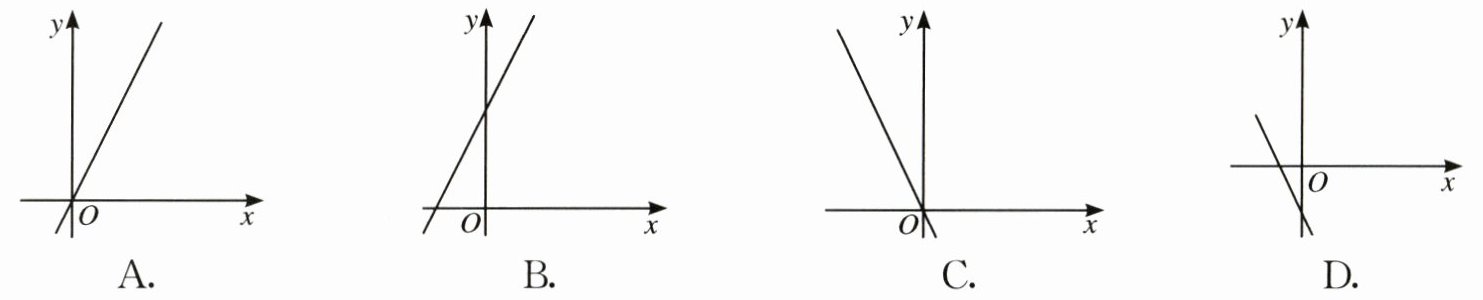 2.C [解析]$k = -2 < 0$,根据正比例函数的图象和性质,该函数的大致图象是过原点且过第二、第四象限的直线。故选 C。