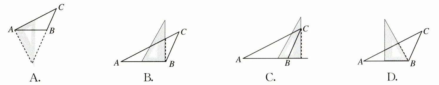 6.C 【解析】三角形一边上的高一定经过这条边所对的顶点,由图形可知选项A,B,D中所作的线段均不是高.故选C.