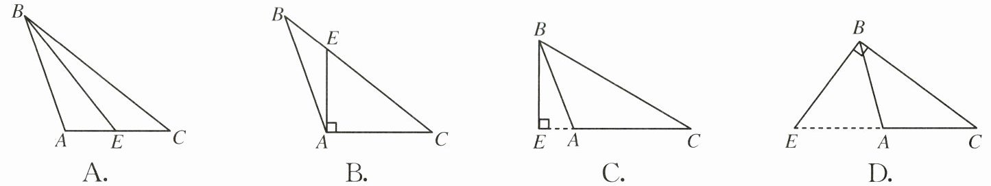3. 在下列各图中,正确画出AC边上的高的是().