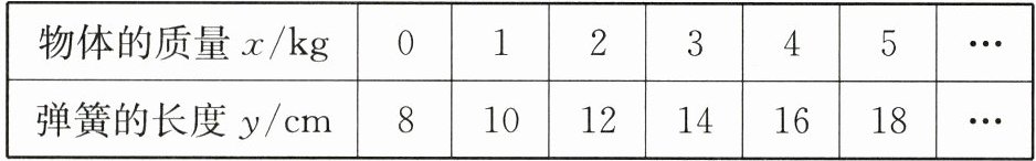 | 物体的质量x/kg | 0 | 1 | 2 | 3 | 4 | 5 | ... |