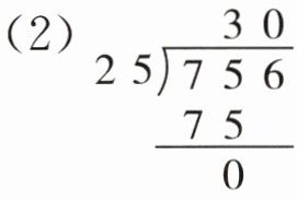 改正:$\begin{array}{r}30\\25\enclose{longdiv}{756}\\75\\\hline6\end{array}$