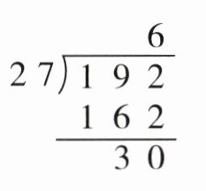 改正:$\begin{array}{r}7\\27\enclose{longdiv}{192}\\189\\\hline3\end{array}$