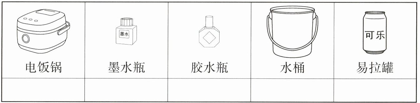 | 电饭锅 | 墨水瓶 | 胶水瓶 | 水桶 | 易拉罐 |