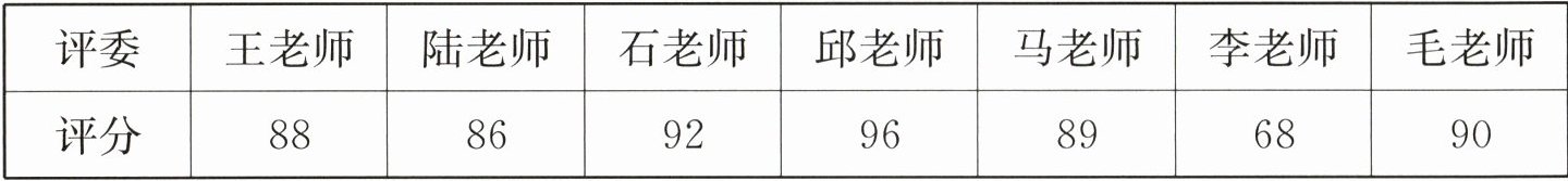 1. 在诗歌朗诵比赛中,7 位评委老师给参赛选手小萌的评分如下表:(8 分)