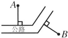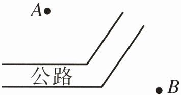 3. $A$、$B$ 两个村庄修一条通向公路的小路,请你帮两个村庄画出最短的修路方案,并说明理由。(7分)