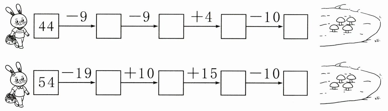 $45 + 29 =$ $68 + 9 =$ $41 - 7 =$