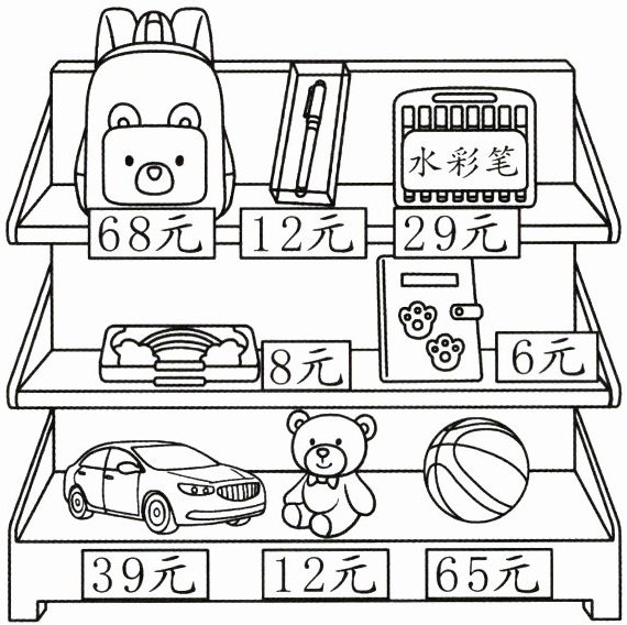 (1)妈妈买了1个书包和1盒水彩笔,一共花了多少元?