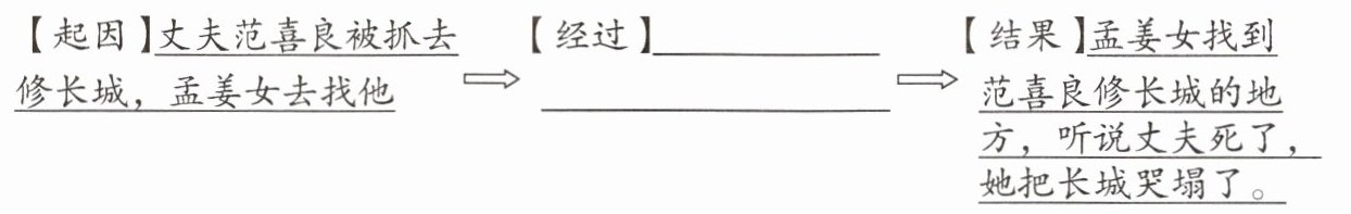4. 请用简洁的语言梳理故事情节,并以孟姜女的口吻简要复述故事。