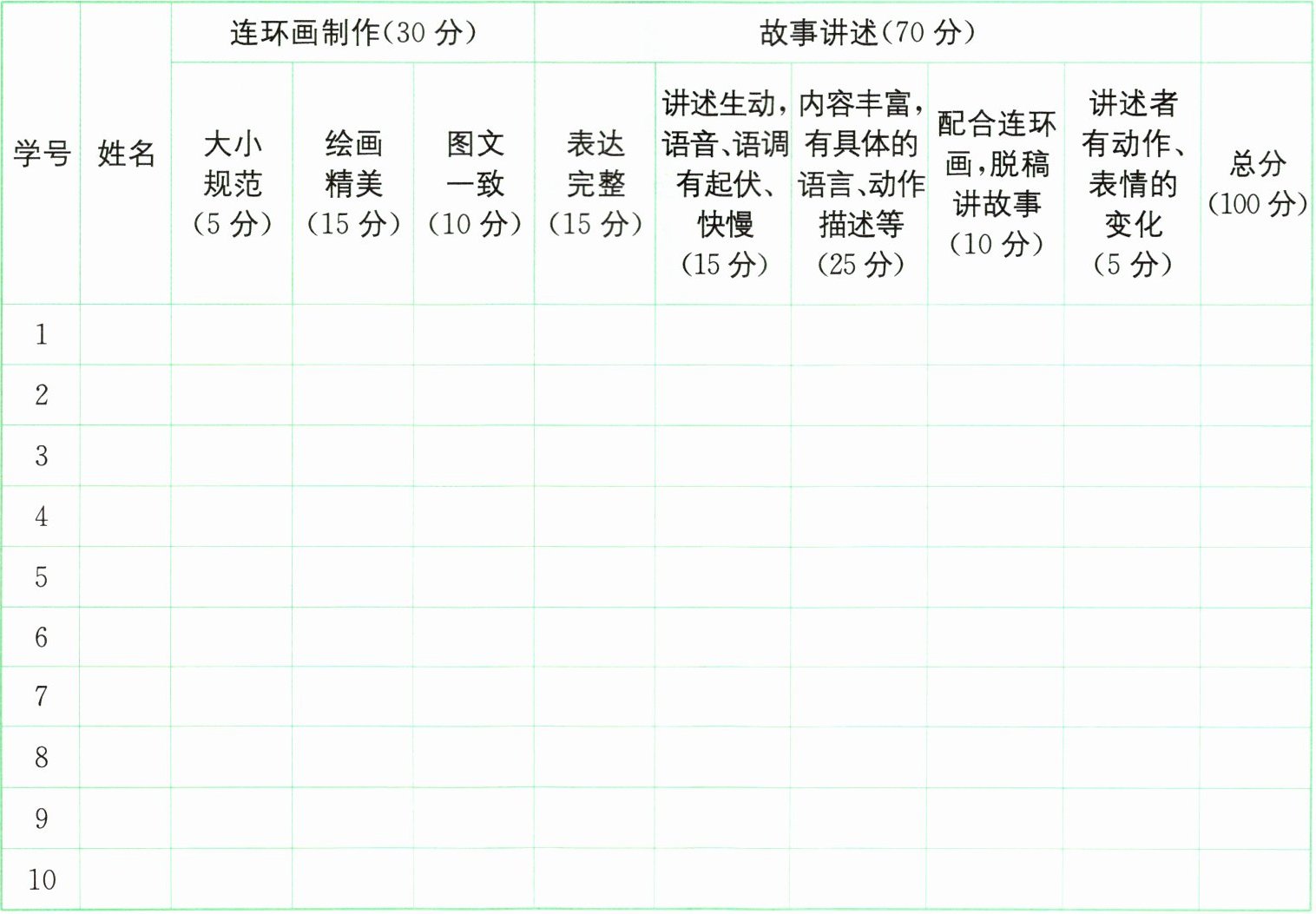 1.借助自己绘制的连环画讲故事,录制视频并上传至班级群相册。