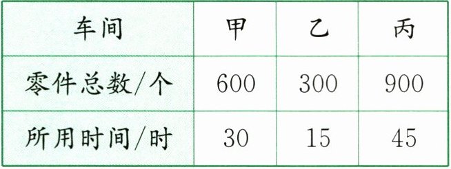 4. 工厂生产零件,三个车间生产零件的总量和所用时间如下表。