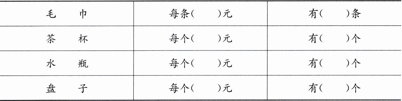 |物品|每条/个(元)|有(条/个)|