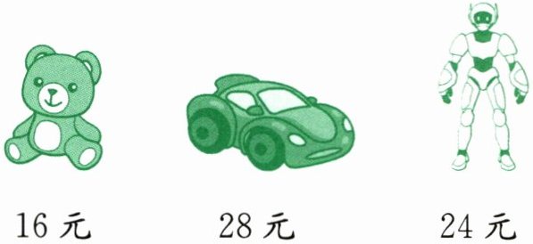 答:能买小熊玩具21个,小汽车玩具12个,机器人玩具14个。