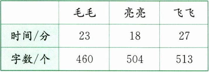 例2:暑假期间,毛毛、亮亮、飞飞练习打字。下面是三人某次测试的成绩记录。