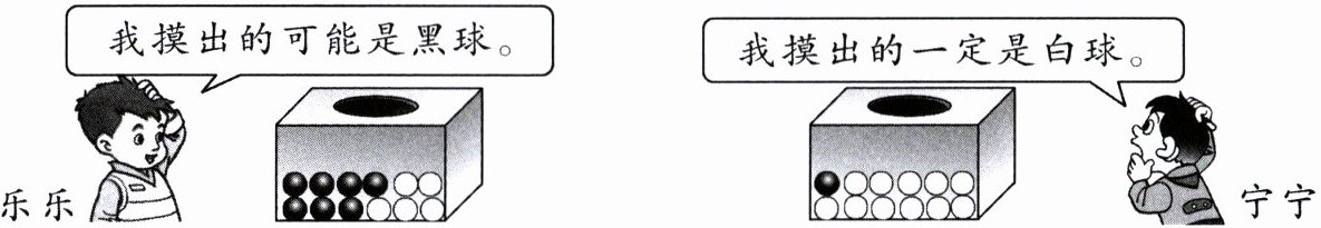 第二个箱子中只有白球,所以摸出的一定是白球,不可能是黑球,而题目说两个箱子里有黑球和白球,宁宁说摸出的一定是白球,若按宁宁说法,第二个箱子不应存在黑球,与题目条件矛盾,所以宁宁说法错误,乐乐说法正确(根据两个箱子球的情况合理判断摸球可能性)。